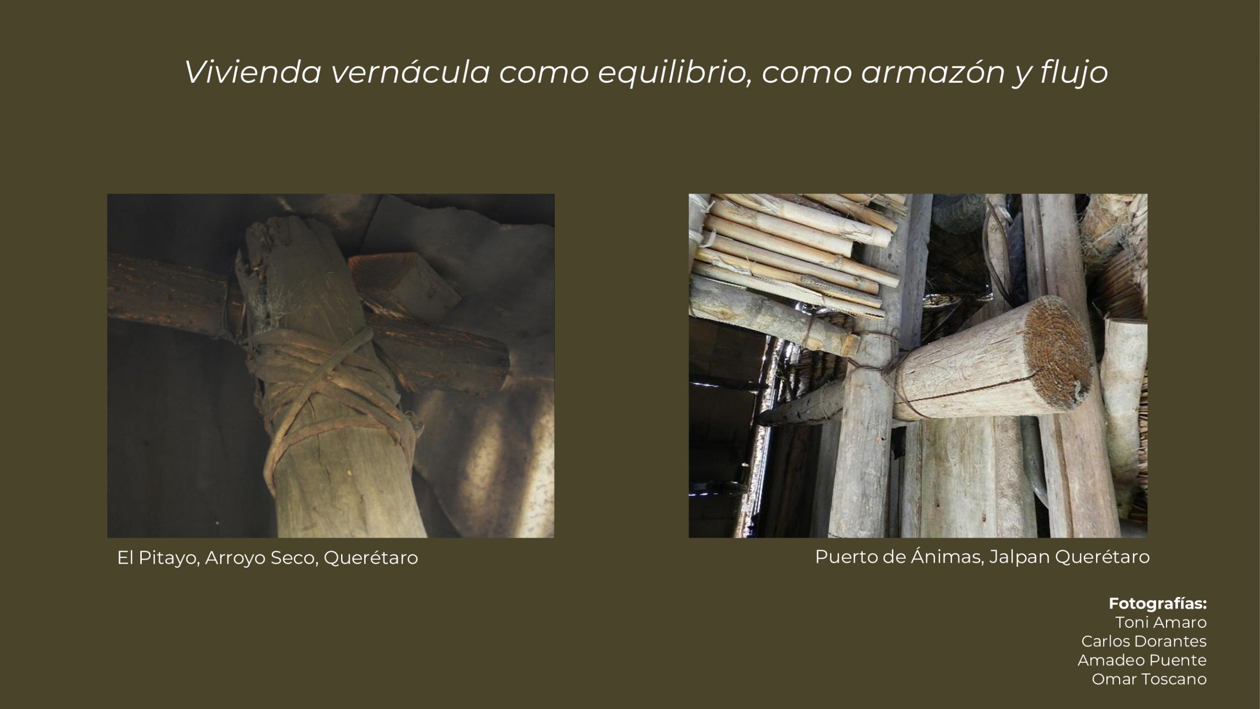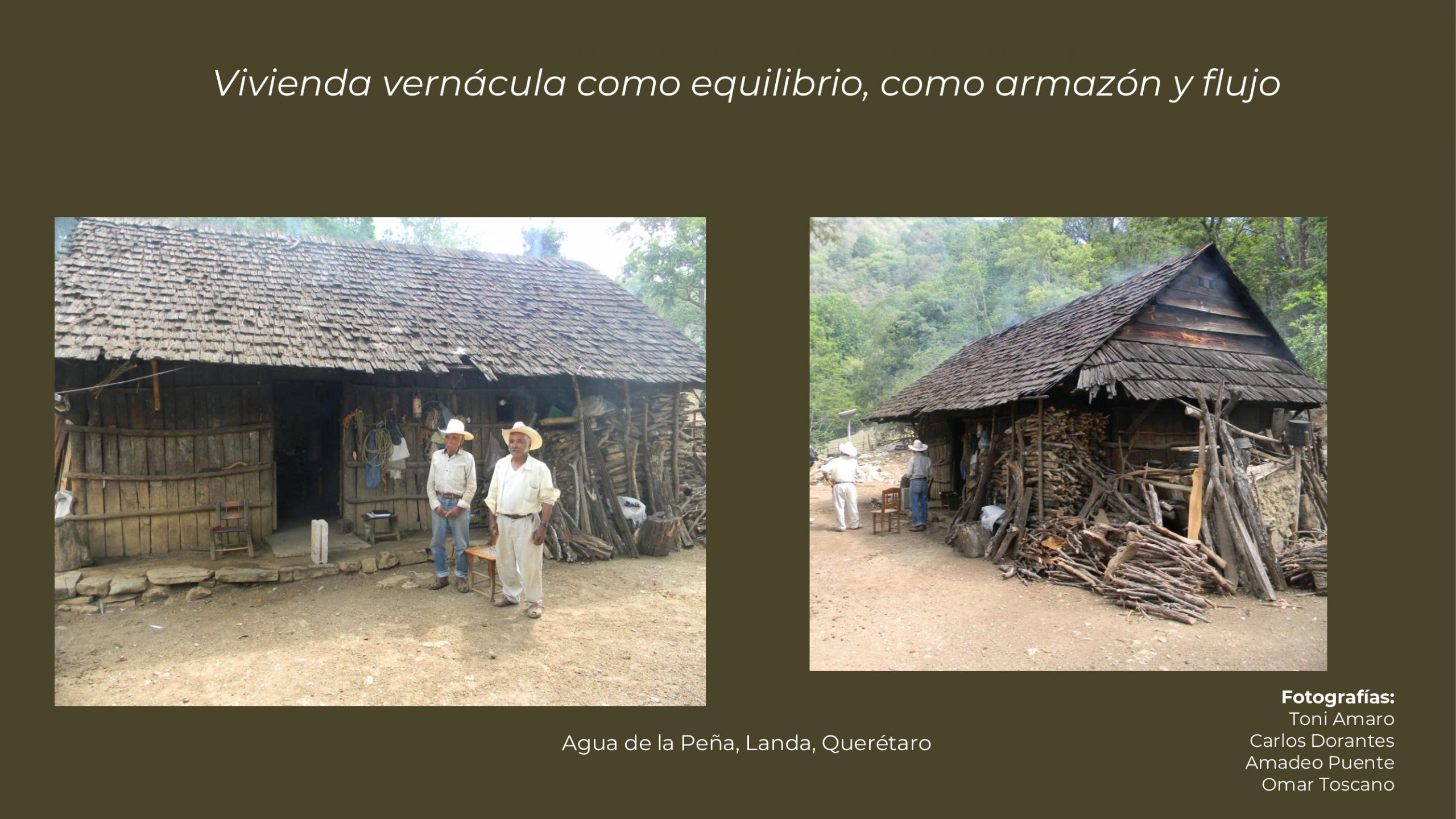Querétaro. Taller de Vivienda UAM- X. https://tavi.xoc.uam.mx/vivienda-vernacula-como-equilibrio-armazon-y-flujo-casos-de-la-sierra-gorda-de-queretaro/ - Referencia en APA de Diapositivas: Toscano, E., (2022). Vivienda vernácula como equilibrio, armazón